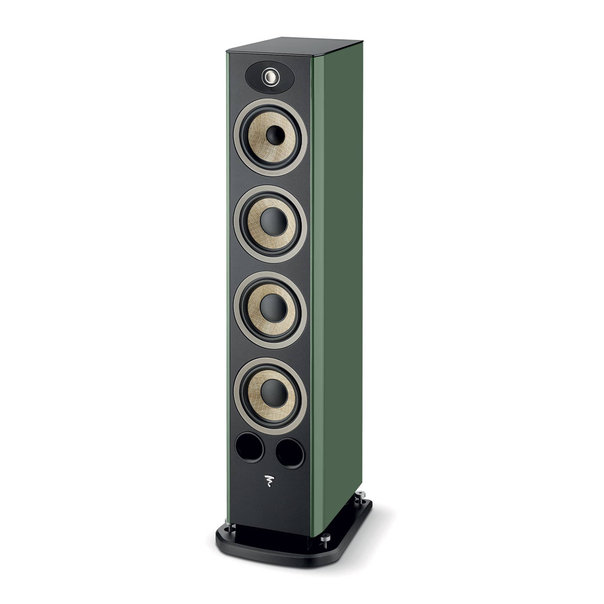• Princip: 3-vägs golvare med 2 x basreflex (front + nedåtriktad port)